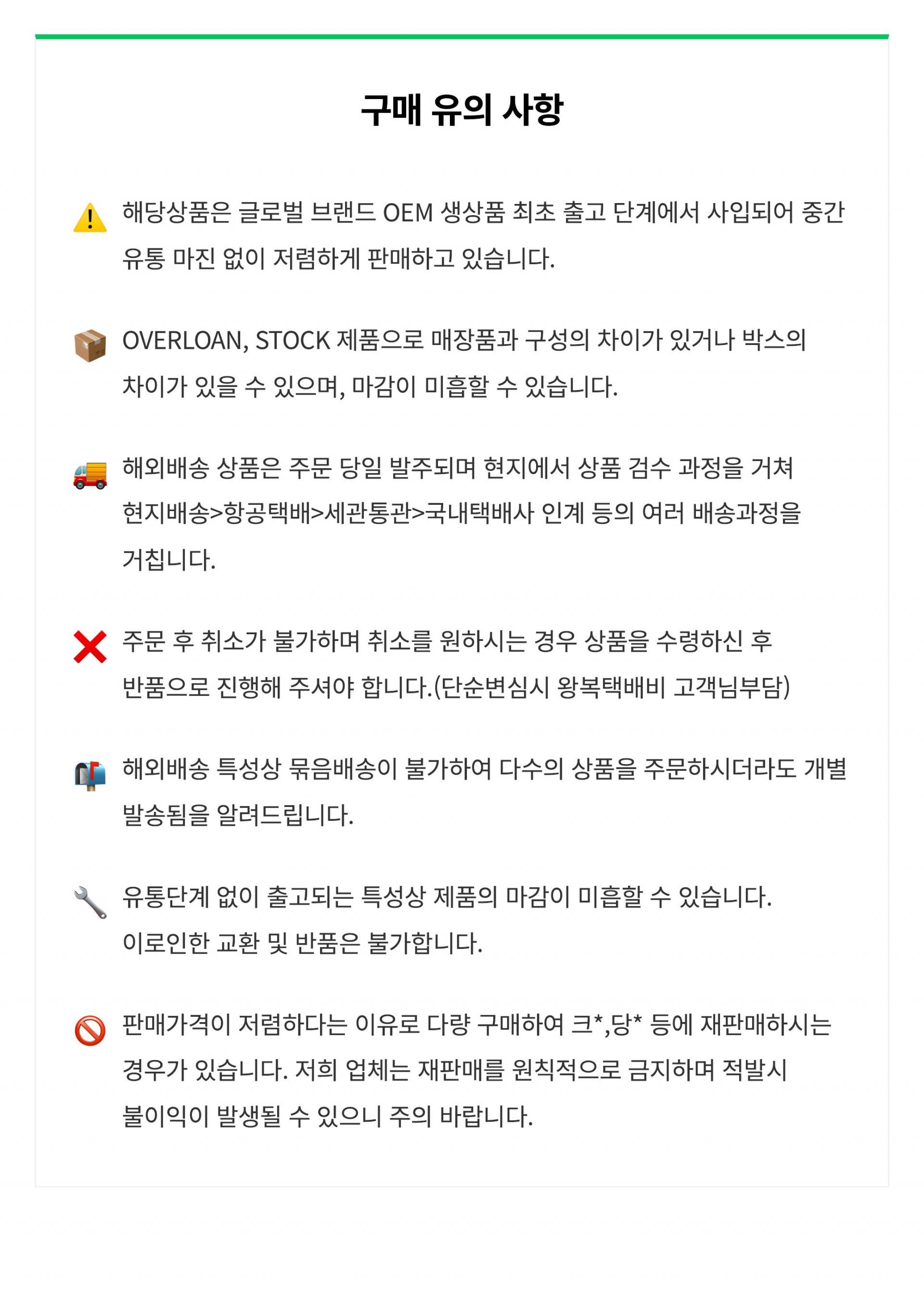 **교환/반품시 박스가 훼손되거나 상품 구성품이 분실되거나 상품 착화 현상이 있을시 교환/반품이 불가하고 거부될 수 있으니 주의 바랍니다.